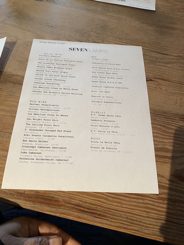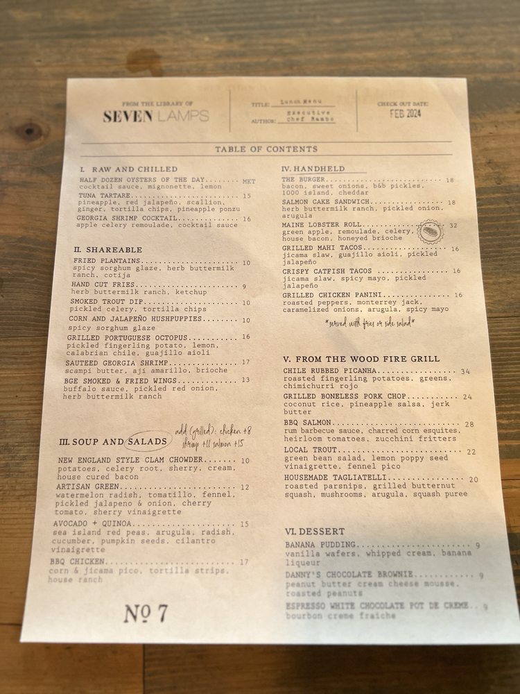 Seven Lamps Menu